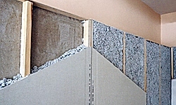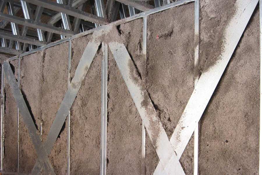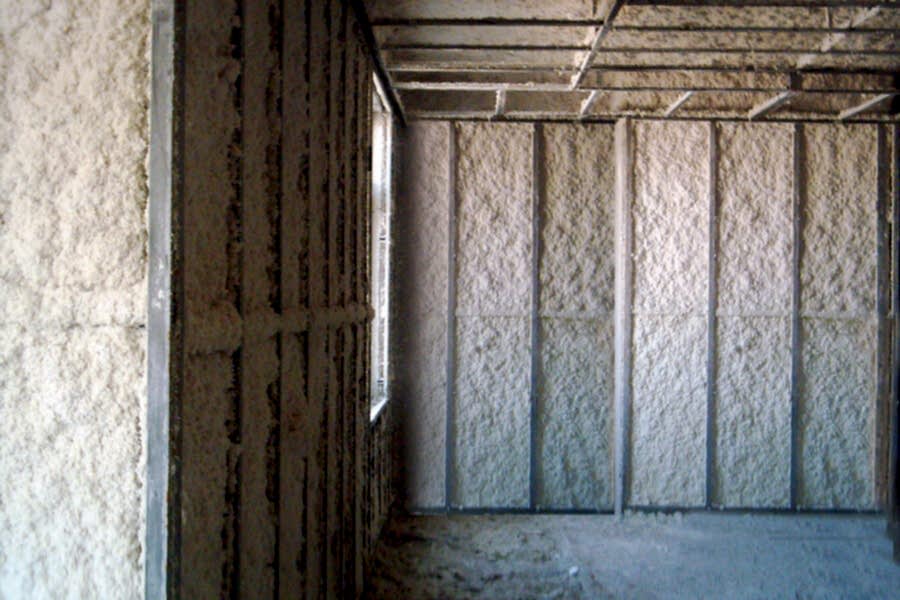 Yapılarda; dışarıdan püskürtme ile siding, beton esaslı malzemeler, cam, alüminyum, granit vb. kaplama altında.